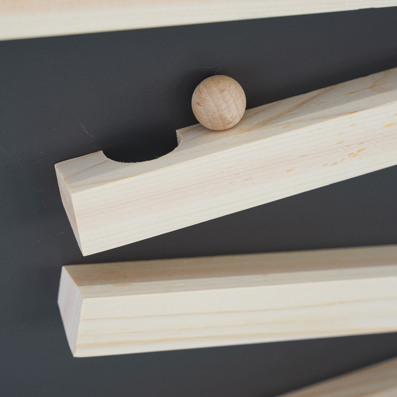 木のレールを組み合わせて、木の球を転がすコースを作ることができます。